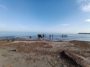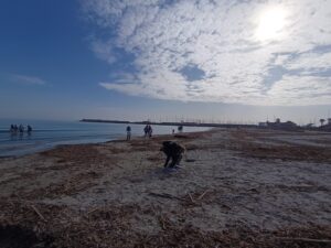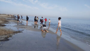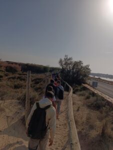 A continuación, hicimos una ruta a pie por Las Salinas, donde los alumnos realizaron una yinkana fotográfica, relacionada con las especies terrestres, acuáticas, ecosistemas y el paisaje del litoral, que les ayudó a interpretar el espacio natural de forma amena y participativa. La jornada finalizó junto a la orilla del mar, observando los restos de Posidonia oceánica en la playa y los distintos invertebrados que fueron localizando, pudiendo valorar la importancia de la conservación de nuestros ecosistemas.